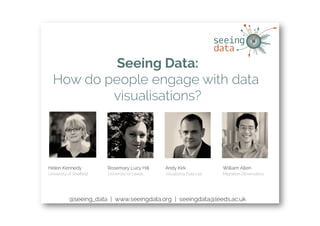 This document discusses factors that influence the consumption and creation of effective data visualizations. It explores both sides of visualization literacy - reading/consuming visualizations and creating them. Key factors discussed for consumption include subject matter/relevance, trust/prejudice, skills/confidence, time/pressure, and emotions. For creation, the document advises defining audiences, being transparent about methods, offering guidance for complex charts, fitting the purpose/setting, and having conviction while avoiding overload. The goal is to better understand how the general public engages with visualizations and help both everyday people and professionals improve visualization literacy.