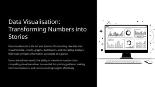 Different data sets require different visual approaches. Understanding which visualisation type to use is fundamental to effective