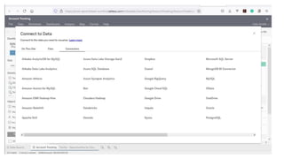 Tableau is a leading data visualization and business intelligence software that allows users to connect to various data sources like Excel, databases, and cloud services. It uses a simple user interface to create interactive visualizations like tables, charts, and graphs. Some key benefits of Tableau include flexible data architecture, automatic updates, embedded analytics, scalability, security, and not requiring technical knowledge. The Tableau workspace contains various elements like worksheets, menus, and shelves to organize visualizations.