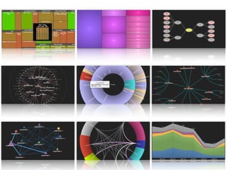 This document provides guidance on data visualization for the web. It discusses using web standards to create data visualizations and introduces several JavaScript libraries for data visualization, including the JavaScript InfoVis Toolkit and PhiloGL. Examples of these libraries are shown and the document provides links to further examples on using them to create interactive data visualizations on the web.