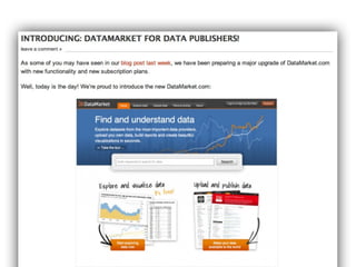 The document outlines a presentation by Hjalmar Gislason at the Boston Data Visualization Meetup, focusing on the importance of data visualization and the challenges of publishing numerical data. It discusses the technical requirements and stack used for creating visualizations, emphasizing the need for full control over design, browser compatibility, and server-side rendering. The presentation also compares different visualization tools, specifically Protovis and D3.