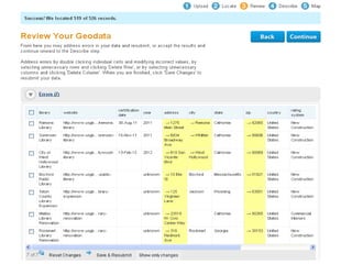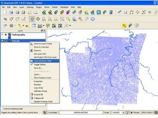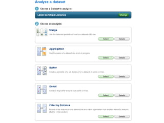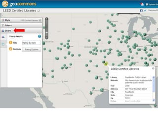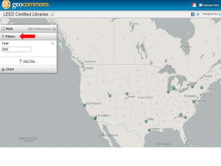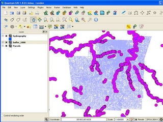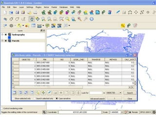 This document provides an overview of Geographic Information Systems (GIS), highlighting its capabilities in managing and analyzing spatial data through both vector and raster formats. It explains the uses of GIS in various applications such as conservation, vehicle routing, and demographic research, and lists sources of GIS data from federal, state, and local levels. The document also discusses different types of GIS software, including professional tools and lightweight applications, along with examples relevant for libraries.