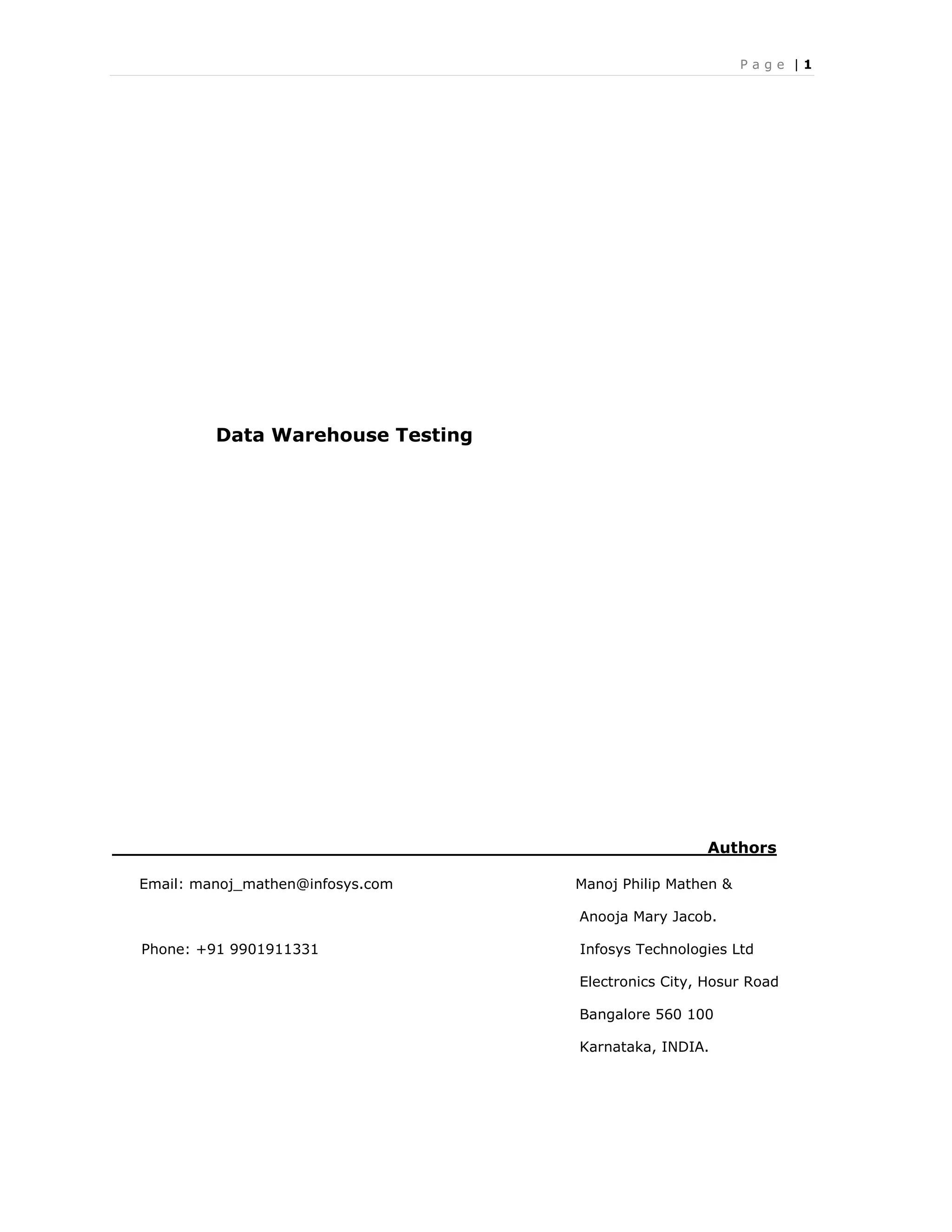 This document provides information about testing a data warehouse. It discusses the different components that need to be tested, including ETL processes, the OLAP engine, and client applications. It outlines the various phases of data warehouse testing, such as testing the initial data load and periodic updates. Challenges of data warehouse testing include dealing with large volumes of heterogeneous data from multiple sources and ensuring data quality and temporal consistency. Best practices include focusing on data quality testing and identifying critical business scenarios to test.