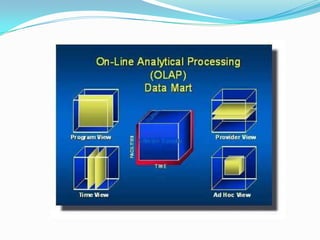 This document provides an overview of data warehousing and related concepts. It begins with definitions of key terms like data warehousing, data marts, and OLAP. It then covers the history and evolution of data warehousing in organizations. The document outlines the typical architecture of a data warehouse, including sources, integration, and metadata. It discusses benefits like providing a customer-centric view and removing barriers between functions. It also notes some disadvantages like latency and maintenance costs. Finally, it briefly touches on strategic uses, data mining, and text mining.
