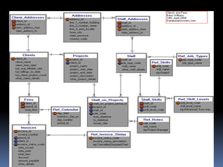 The document discusses key concepts in database design including fields, records, database management systems (DBMS), normalization, and the roles of a database administrator. It explains that a field is the smallest unit of data, a record contains related fields, and a DBMS provides an interface between data files and programs. The document also covers database normalization forms, logical and physical views of data, and functions of a DBMS like ensuring data integrity and security.