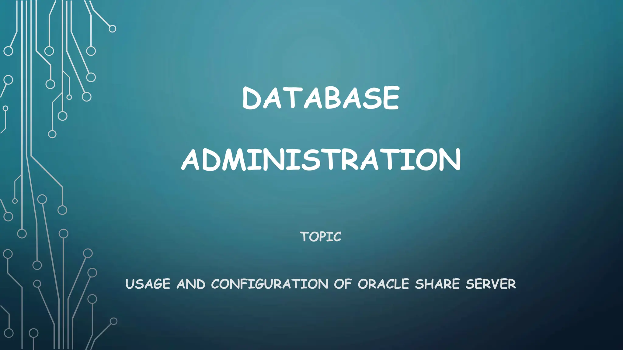 The document discusses the configuration and usage of Oracle's dedicated and shared server processes in database administration. It outlines the benefits of shared server processes, including reduced memory usage, increased user capacity, and improved load balancing. Key configuration parameters for Oracle shared servers are also mentioned, such as dispatchers and shared servers.