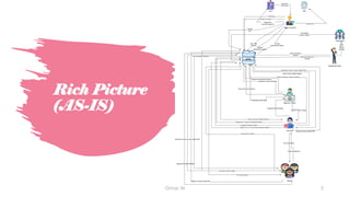 This document summarizes a student performance monitoring system project presented by Team Failure Databees. It includes sections on the existing problems in their AS-IS and TO-BE rich pictures, a table analyzing the existing system and proposed solutions, an EERD, relational schema, data normalization over multiple pages, and a data dictionary. The project aims to develop a customized dashboard with role-based access, implement authentication and authorization controls, and create a backlog record management system.