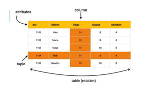 This document provides an overview of database management systems. It discusses what data is and how it differs from information. It then describes some issues with traditional file systems for data storage and how database management systems were created to overcome these deficiencies. The key characteristics of a database management system are then outlined, including using real-world entities, relation-based tables, isolation of data and application, normalization to reduce redundancy, consistency, and ACID properties. The document also discusses database architecture types, data models, the relational model, database schemas and instances, and SQL. Finally, it covers some database design concepts like entities and attributes, relationships and keys, and generalization and specialization.