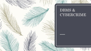 The document provides an overview of database management systems (DBMS) and their significance in organizing and managing data. It highlights the components of a DBMS, including software, hardware, data, procedures, and database access language, while also addressing cybercrime and cyberterrorism, defining key terms and actions related to these topics. Additionally, it discusses the various online spying tools and methods hackers use to exploit digital environments.