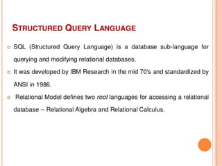 •Database Management System - Software used to maintain database.