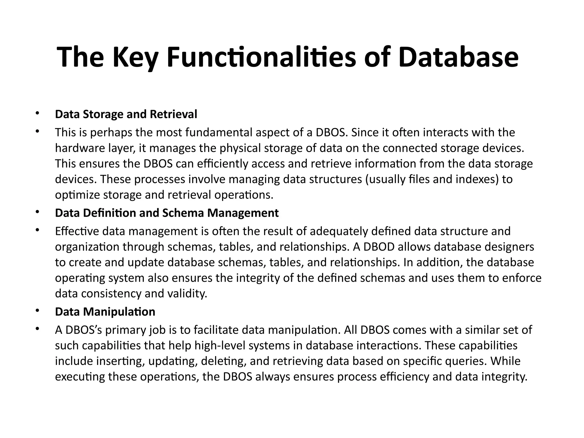 • This is perhaps the most fundamental aspect of a DBOS. Since it often interacts with the