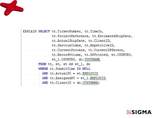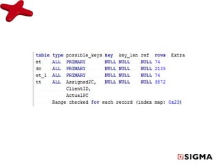 The document provides guidelines for database optimization, emphasizing the importance of verifying optimization efforts with actual data. It covers techniques such as query profiling, indexing strategies, and the use of caching to improve performance. Key advice includes avoiding cached results and optimizing queries by rewriting, selecting necessary columns, and correctly filtering rows.