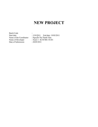 The document describes a system analysis for a project management system called New Project Ltd. It includes details on the entities, attributes, relationships, tables, keys, and normalization of the database design for the system. The system is used to manage projects, clients, employees, expenses, payments and other aspects of providing contract staff for various client projects.