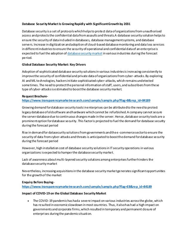 The global database security market is rapidly growing, driven by the increasing need to protect organizational data from unauthorized access and cyber-attacks. Factors such as digitalization, the COVID-19 pandemic accelerating remote work, and rising cybercrime rates are boosting demand for database security solutions. However, high installation costs and a lack of awareness about multi-layered security solutions pose challenges to market growth.