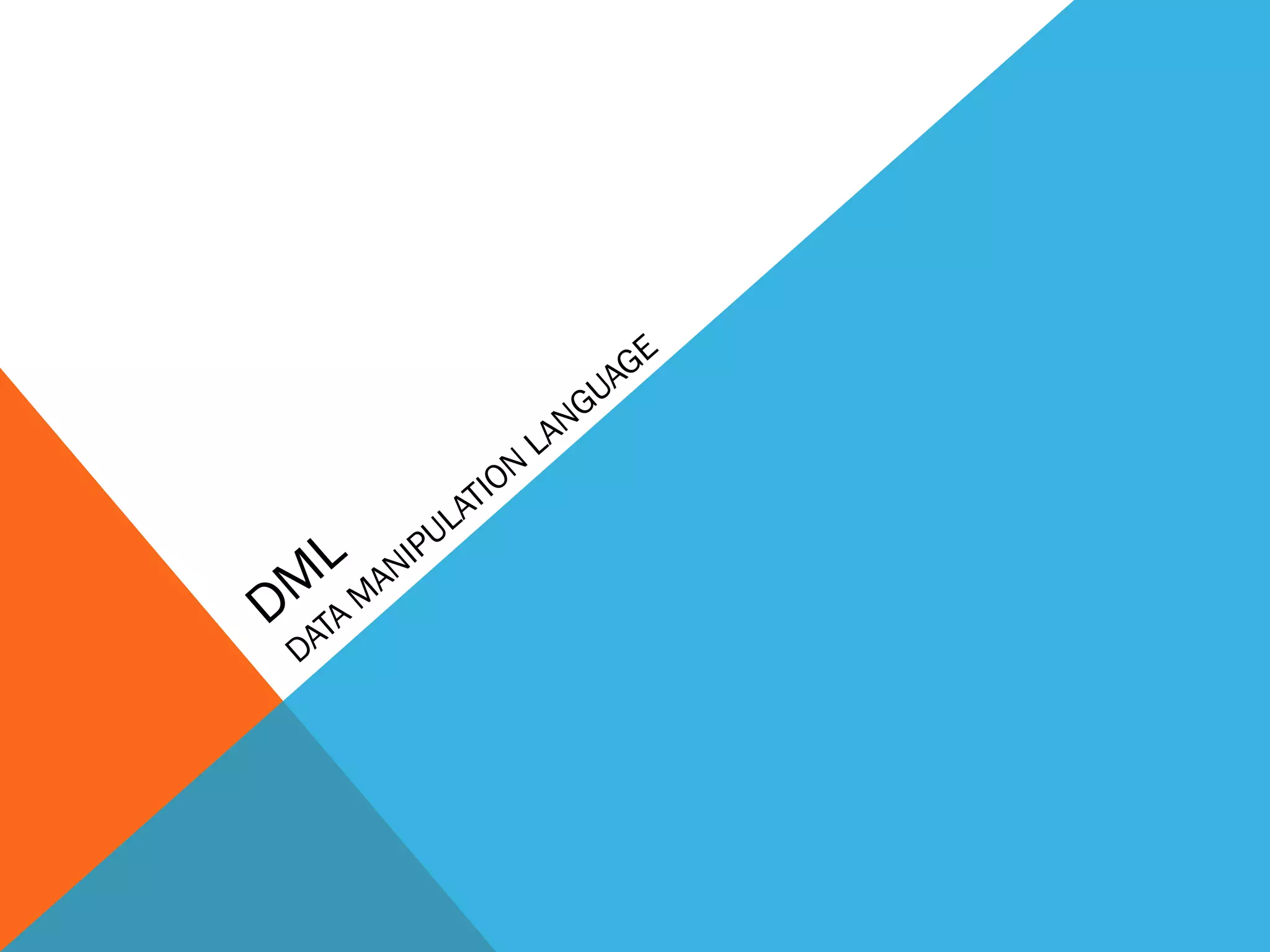 The document discusses the Data Manipulation Language (DML) in SQL. It describes the INSERT, UPDATE, and DELETE commands. INSERT is used to add new rows, UPDATE changes existing rows by specifying conditions in a WHERE clause, and DELETE removes rows specified in a WHERE clause. Examples are provided for each command demonstrating how to insert single and multiple rows, update fields by condition, and delete rows based on conditions.