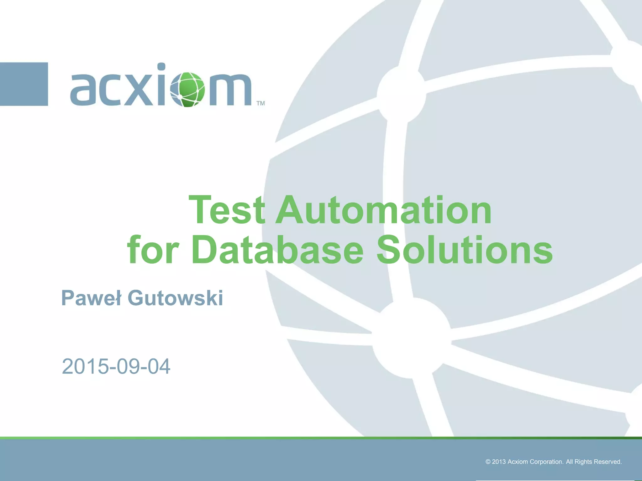 The document discusses test automation for database solutions with a focus on two complementary approaches: single functionality testing and end-to-end testing. It outlines various examples of how each testing method works in practice, highlighting different checks and verifications performed on database tables. Additionally, it touches on the implementation of continuous integration processes related to these testing methods.