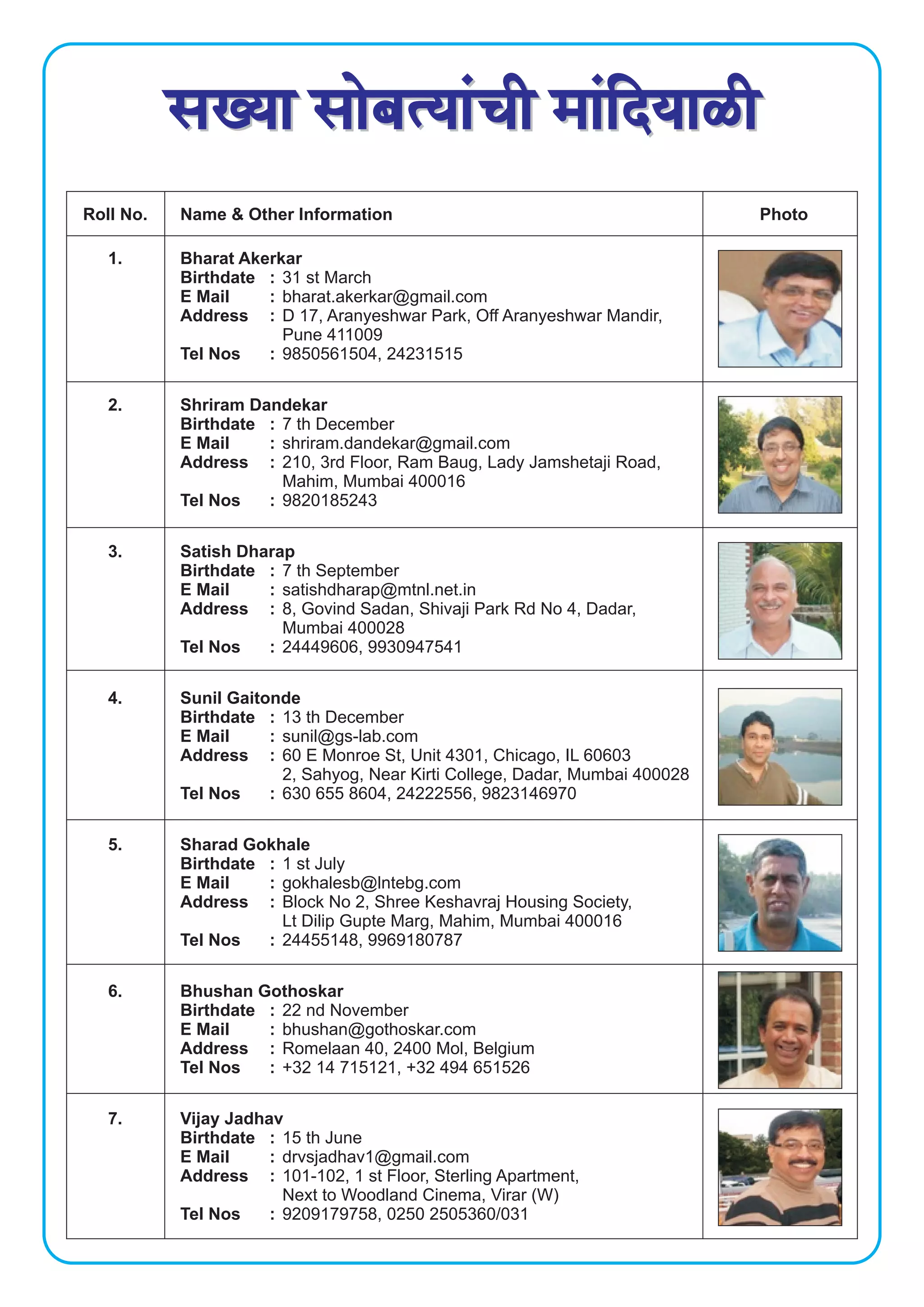 This document contains information about 38 individuals including their name, birthdate, email, address, and telephone numbers. For each person there is an assigned roll number and photo. The information provided includes details like birthdate, email, residential address, phone numbers for contact.