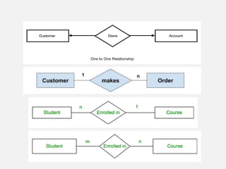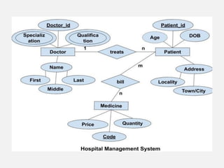 This document provides an overview of database concepts including data, information, databases, database management systems (DBMS), structured query language (SQL), database models, database architecture, database security, and data integrity. It defines key terms and explains topics such as data normalization, database activities, advantages and disadvantages of DBMS, SQL statements, entity relationship diagrams, and database constraints. The document is an introductory guide to fundamental database concepts.