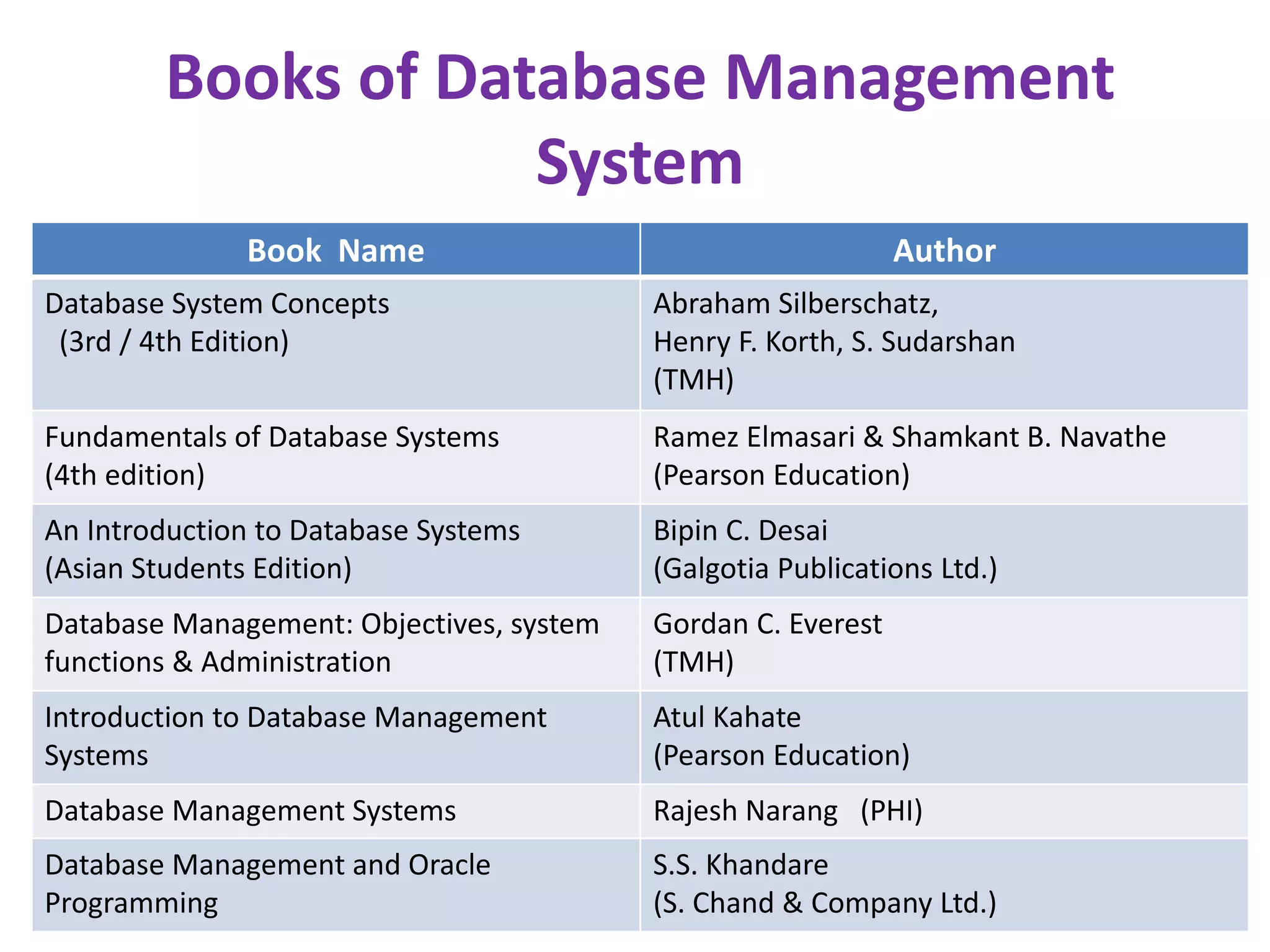 The document discusses several books on database management systems and their authors. It also provides an overview of key concepts in DBMS including what a database and DBMS are, the purpose of database systems, levels of abstraction, instances and schemas, data independence, different data models, database languages, the roles of database administrators and users.