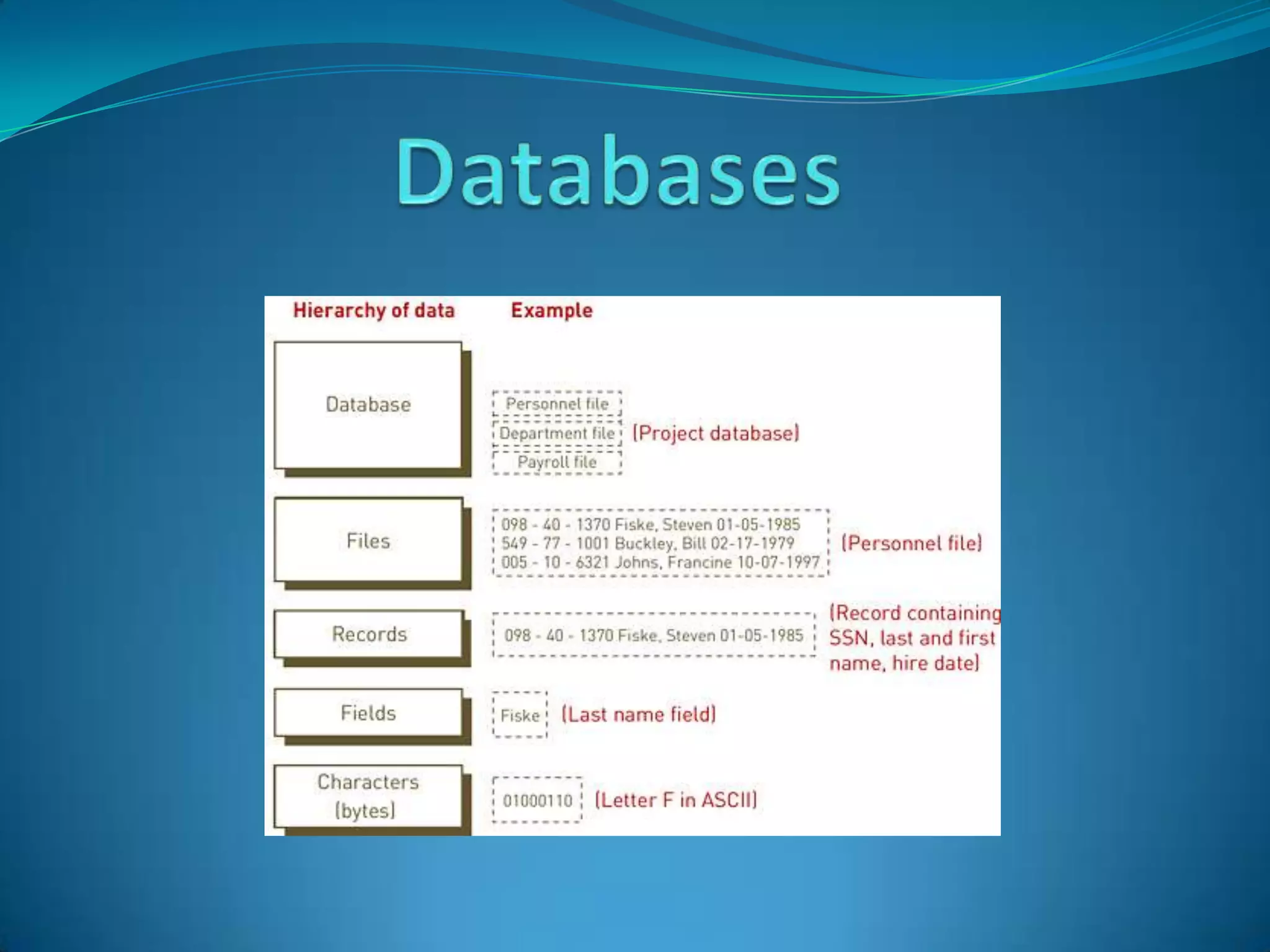 1) A database is an organized collection of data that is managed using database management software (DBMS). A DBMS provides interface between users, applications, and the database. 2) The database approach pools related data that can be shared by multiple applications, reducing data redundancy and improving integrity over traditional separate data files for each application. 3) Relational databases like MS Access organize data into tables with rows and columns, allowing data to be linked together through common keys.