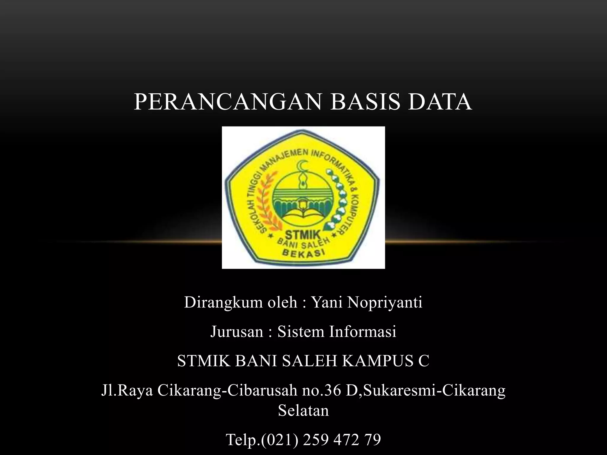 Dokumen ini menjelaskan tentang perancangan basis data, mencakup definisi database, komponen pokok, dan berbagai jenis data yang disimpan dalam sistem database. Terdapat juga penjelasan mengenai model data, khususnya model entity-relationship, dan jenis-jenis hubungan antar entitas. Tujuan utama dari perancangan database adalah untuk memenuhi kebutuhan informasi pengguna dan mempermudah pemrosesan data.