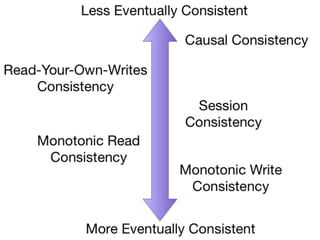 The document discusses databases and distributed systems. It provides an overview of databases, their uses, and how they are built to handle large scale and failures. It describes concepts like transactions, consistency models, and how databases are designed for horizontal and vertical scalability. Key-value store systems like Dynamo and Riak that sacrifice consistency for availability and partition tolerance are examined. The document also covers techniques like CRDTs, vector clocks, and multi-partition transactions that aim to provide both consistency and availability in distributed systems.