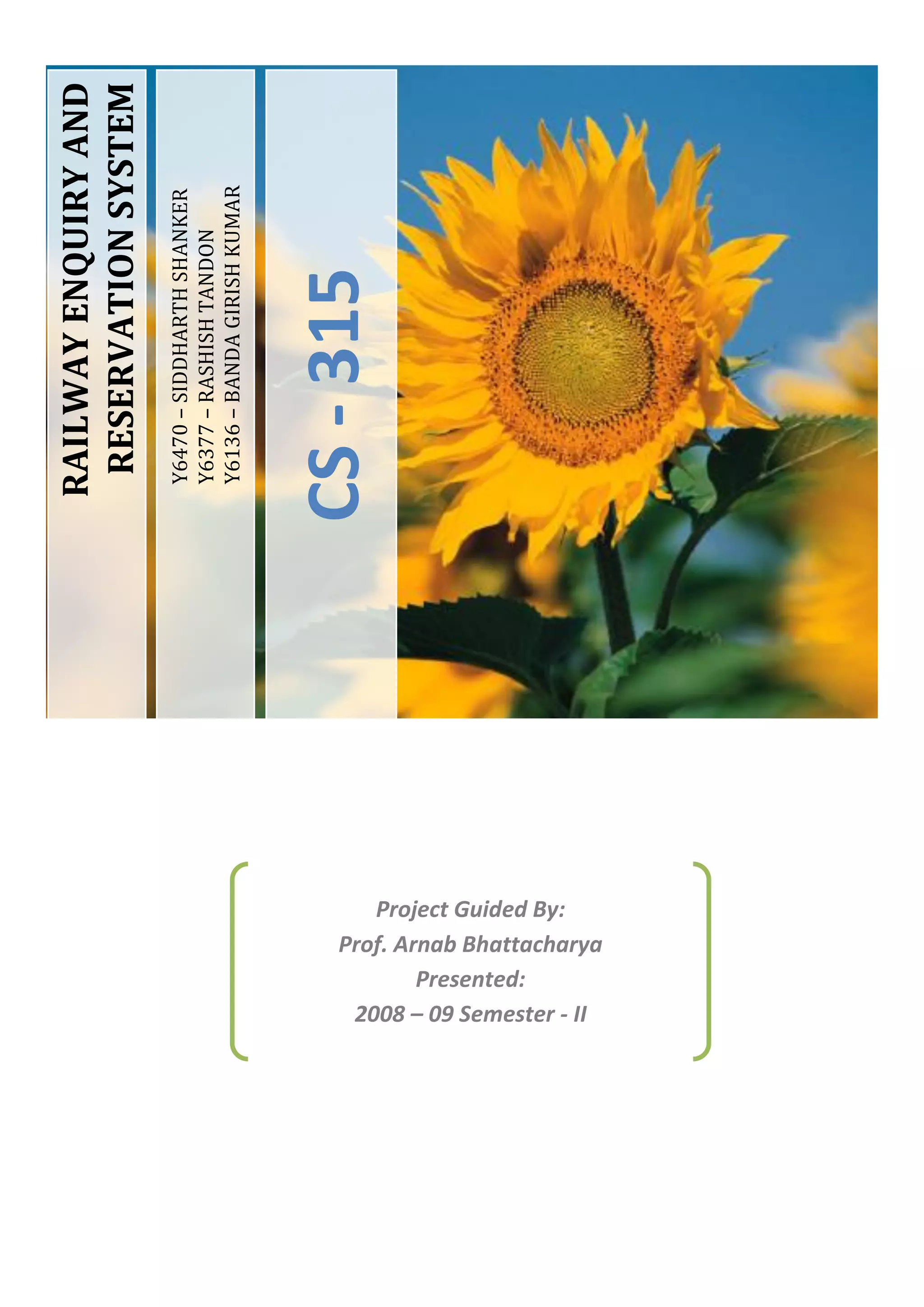 This document describes a railway reservation and enquiry system. It discusses the motivation, scope, and functionality of the system. Key aspects include allowing customers to make, view, and cancel reservations online and allowing administrators to modify backend databases. It covers the implementation including schemas, data flow, and session management. Performance is analyzed based on database design and types of queries. External interface requirements and potential future work are also noted.