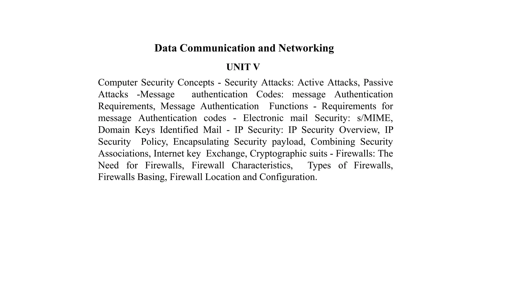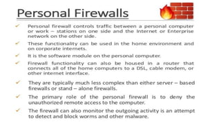The document outlines various computer security concepts including active and passive attacks, message authentication, email security, IP security, cryptographic suites, and firewalls. It highlights the importance of protecting computer systems from various threats, both malicious and accidental, and provides details on the mechanisms used for securing data, such as message authentication codes, firewalls, and email protection measures. Additionally, it reviews different types of attacks and security measures, detailing the architecture and protocols involved in securing network communications.