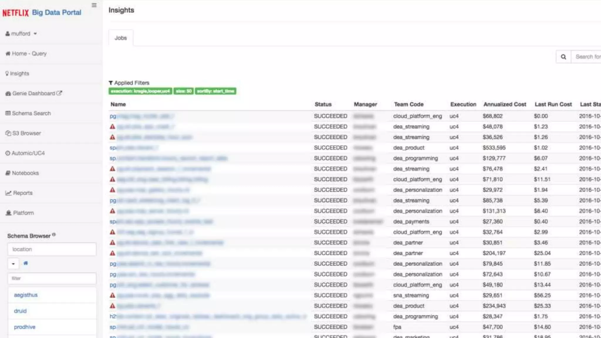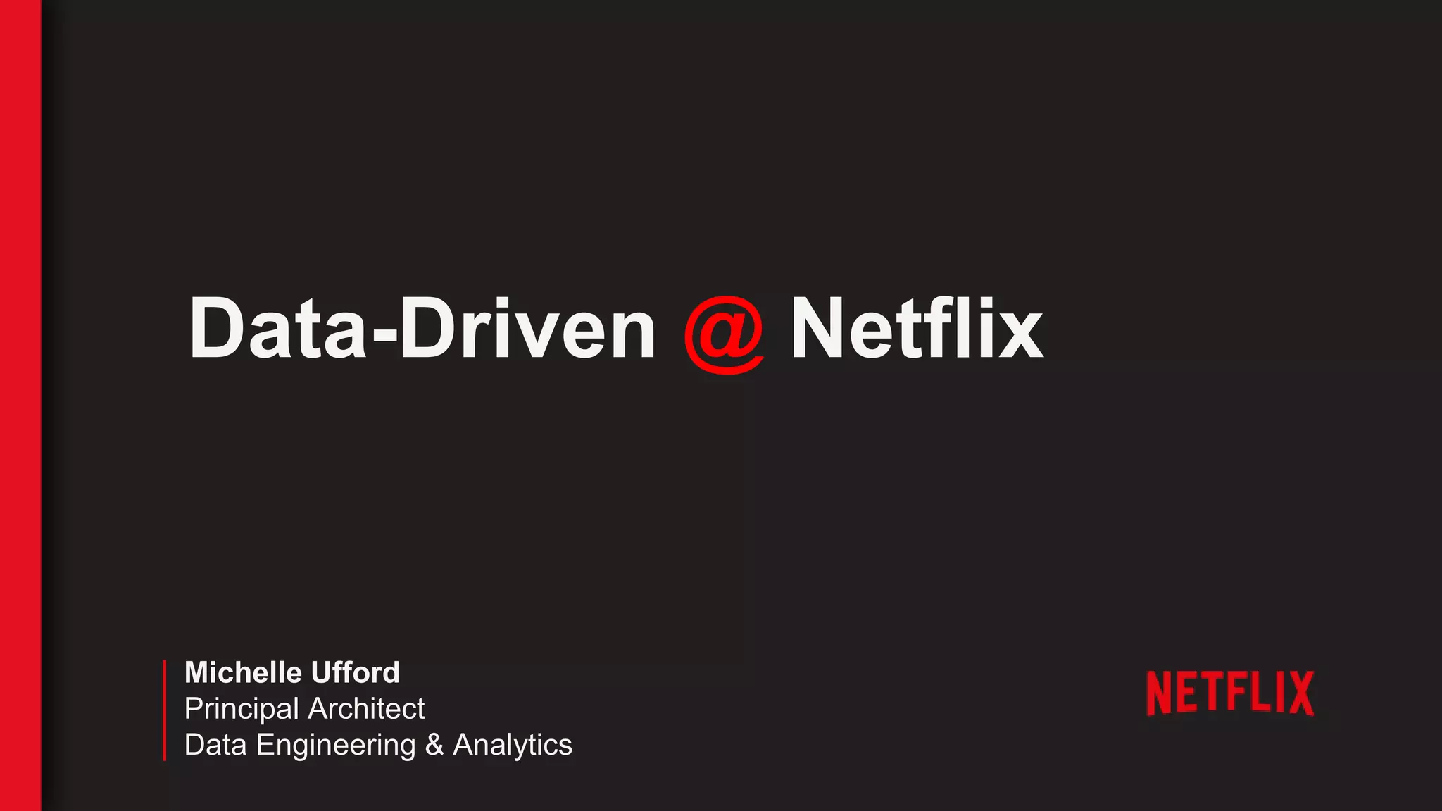 Michelle Ufford is a Principal Architect at Netflix who leads their Data Engineering and Analytics team. Netflix has over 86 million members who watch over 125 million hours of content daily on over 1000 supported devices. The data team manages a 40 petabyte data warehouse with 4 petabyte daily reads and 300 terabyte daily writes, processing over 700 billion events. The data is used to predict content value, optimize the user experience, analyze news and PR, monitor global service delivery, and power experimentation.