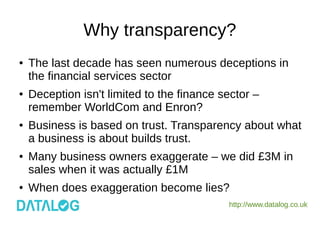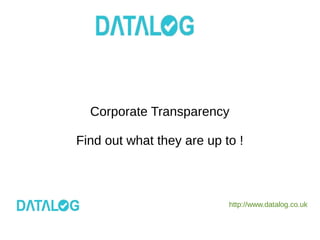 Datalog is a platform that aggregates and provides free access to open data about registered companies in the UK, Canada, and Ireland, including insights into their legal, financial, and operational activities. The initiative addresses the need for transparency in business practices, allowing users to access information on government spending, tax payments, intellectual property, and legal events. By mining available government data, Datalog promotes accountability and trust in the business sector.