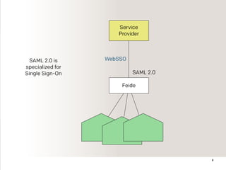 2 Feide Service Provider SAML 2.0 WebSSOSAML 2.0is specialized for Single Sign-On