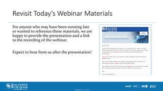 The document provides an overview of a webinar about machine learning applications in various industries, specifically focusing on predictive analytics and modeling techniques such as CART and gradient boosting. It emphasizes the importance of sufficient data, selecting the right problem, and using appropriate tools to effectively utilize machine learning for solving real-world issues like manufacturing defects and fraud prevention. The session is presented by Charlie Harrison of Salford Systems, and resources such as datasets and software tools are made available for hands-on practice.