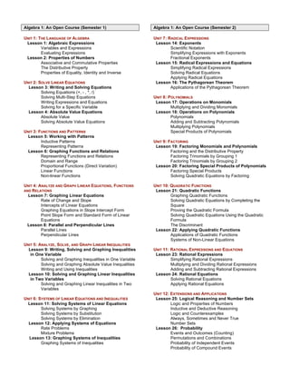 The document outlines an open online Algebra 1 course to be offered in summer 2010. It will cover the traditional topics in a two-semester Algebra 1 class using a flexible online learning model incorporating multimedia and interactive components. The course will be available free of charge through open educational resources and aims to make Algebra accessible to all students through a blended approach tailored to individual learners.