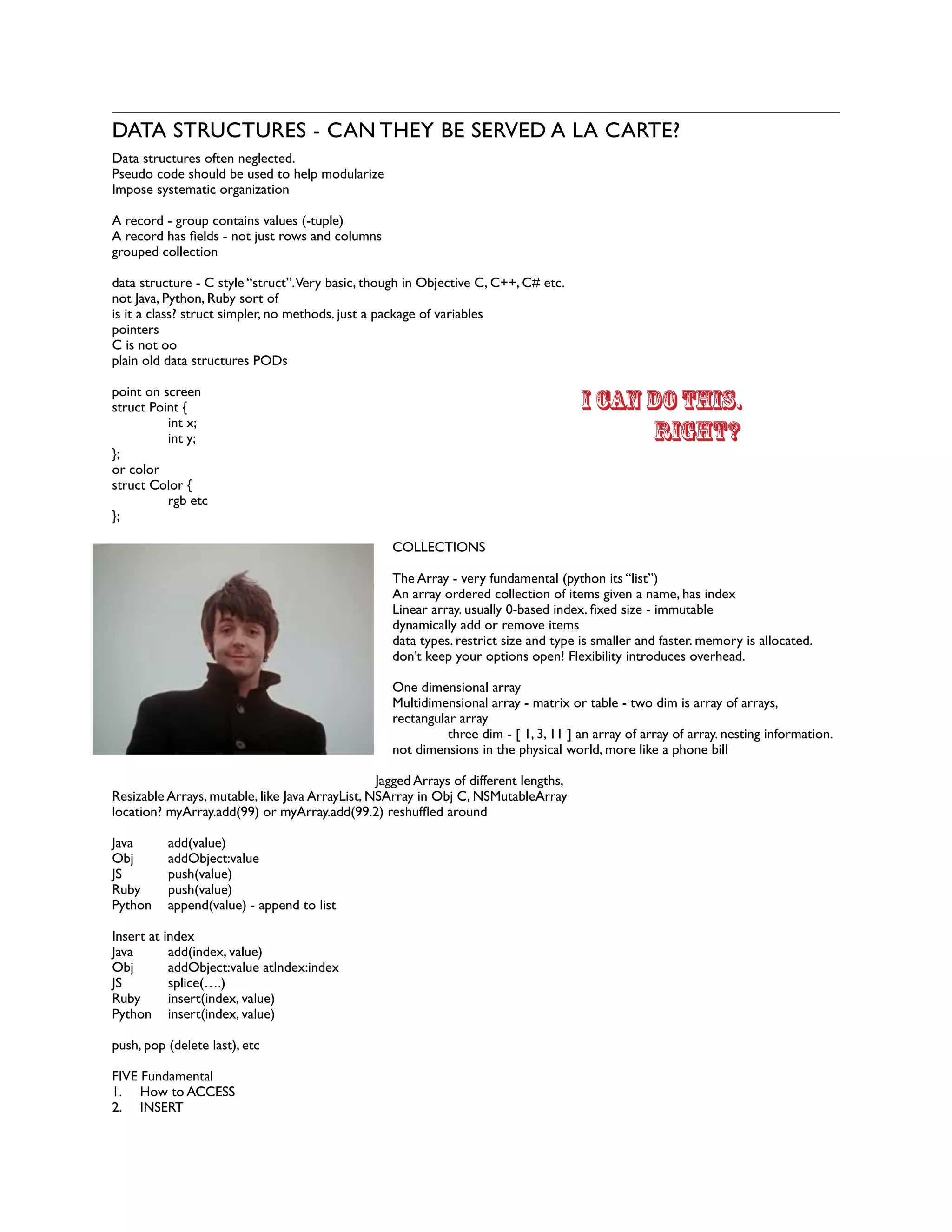 This document discusses various data structures and their properties. It covers arrays, linked lists, stacks, queues, hash tables, sets, binary search trees, and heaps.
