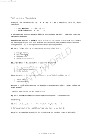 1. The document discusses data structures and provides 23 questions and answers about data structures.