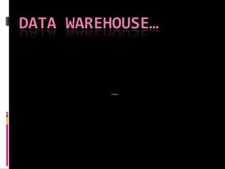 The document discusses various concepts related to database design and data warehousing. It describes how DBMS minimize problems like data redundancy, isolation, and inconsistency through techniques like normalization, indexing, and using data dictionaries. It then discusses data warehousing concepts like the need for data warehouses, their key characteristics of being subject-oriented, integrated, and time-variant. Common data warehouse architectures and components like the ETL process, OLAP, and decision support systems are also summarized.
