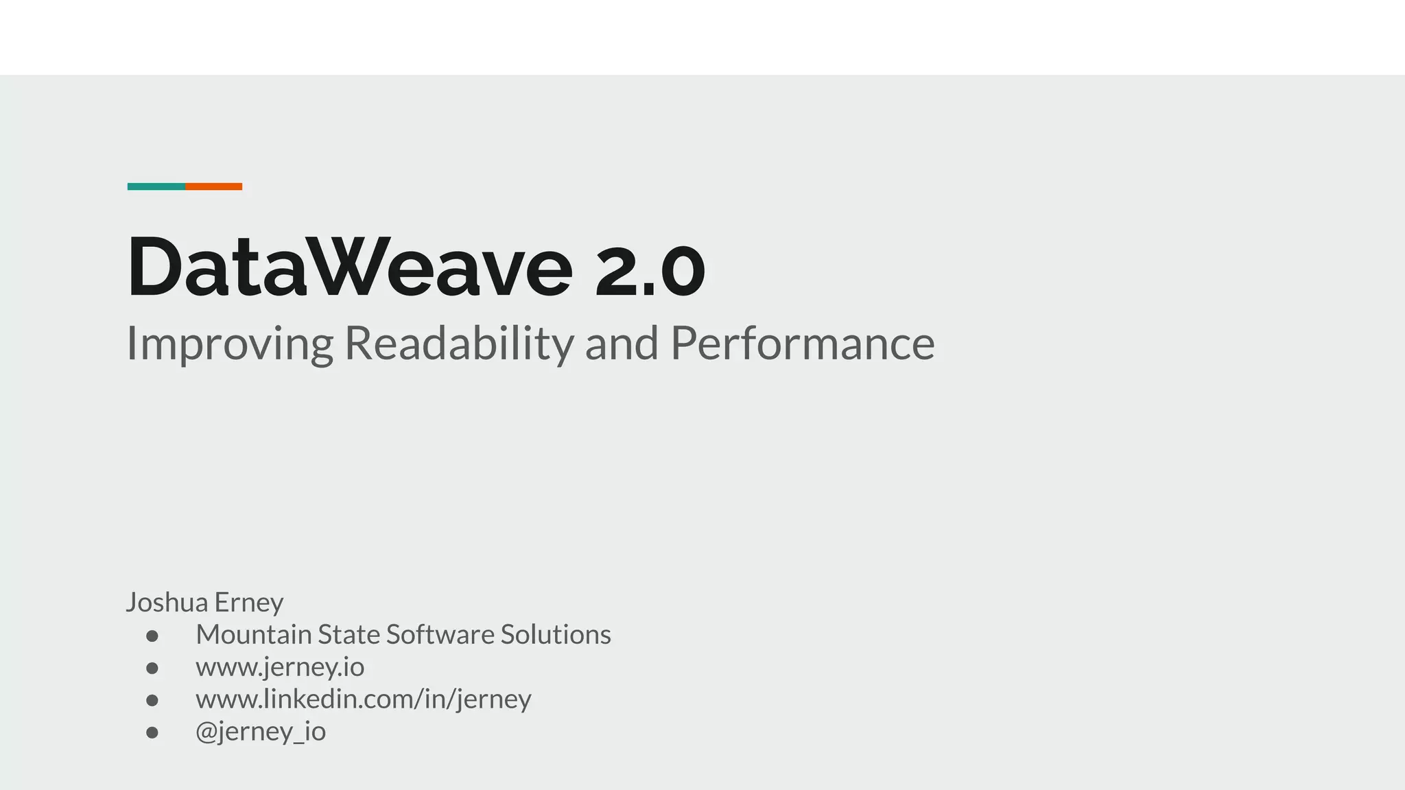 The document discusses improving readability and performance in DataWeave 2.0. It explains that DataWeave is an expression-based language which can lead to nested function calls that are difficult to read. It presents using declarations and do statements in DataWeave 2.0 to write code in a more imperative style with improved readability and performance by avoiding unnecessary calculations. A real-world example of calculating account balances is provided to demonstrate transforming nested expressions into a more readable style using declarations and do statements.