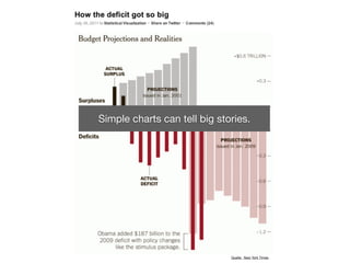 Datawrapper is a tool that allows users to create simple, correct charts from data in just four steps: uploading data, annotating it, visualizing it, and embedding the chart. It is designed for journalists and aims to make data visualization fast and easy. Datawrapper charts are free, open source, can be hosted online or locally, and allow newsrooms to retain ownership of their data. The goal is to help journalists put numbers in context through data-driven storytelling.
