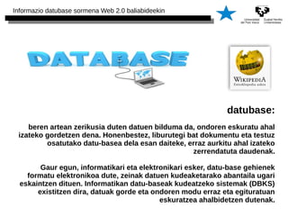 Informazio datubase sormenaWeb 2.0 baliabideekin