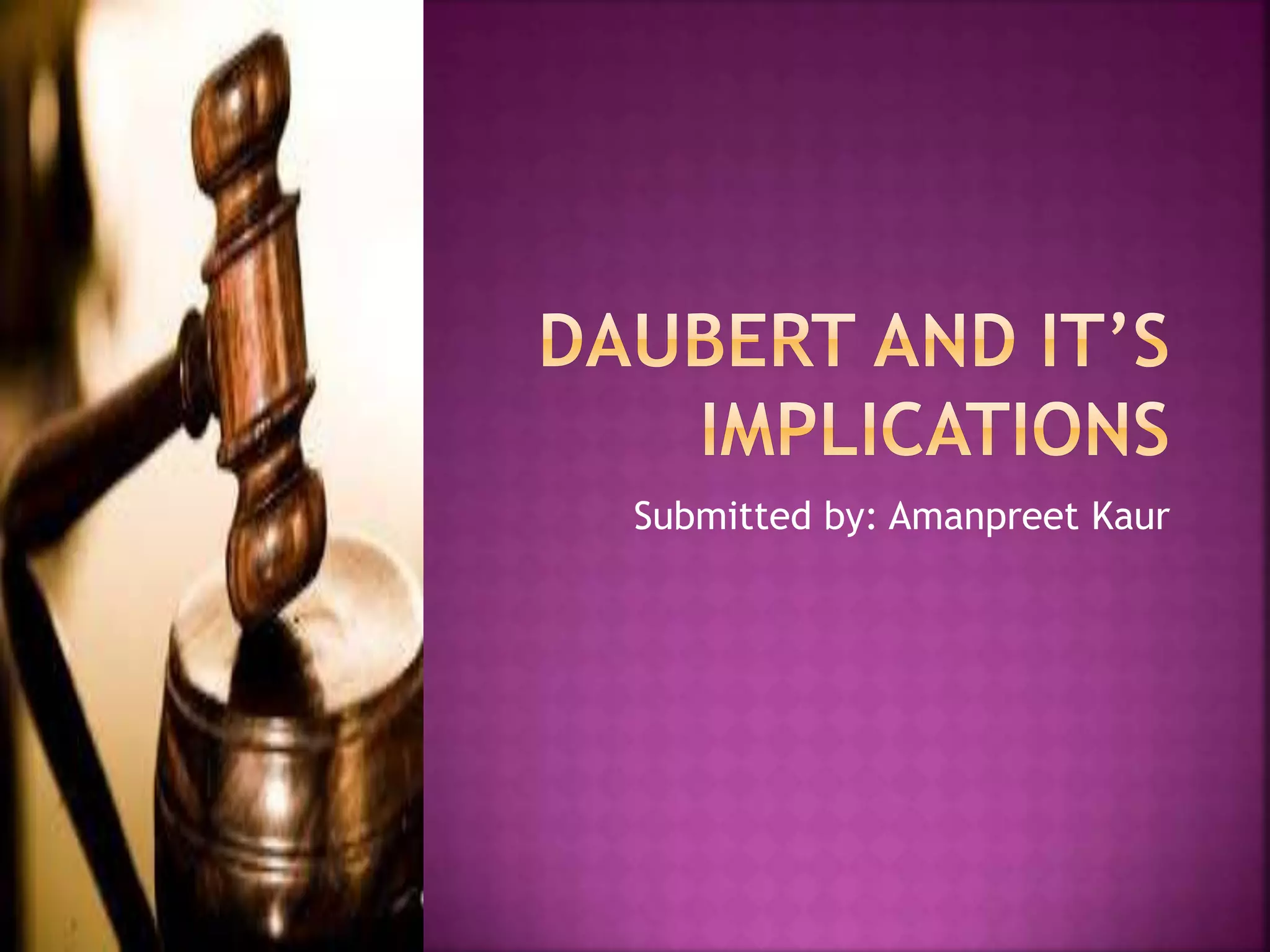 This document discusses the history and evolution of standards for the admissibility of expert testimony in U.S. courts. It begins with the 1923 Frye case, which established that expert testimony must be generally accepted in the relevant scientific community. Subsequent cases, including Daubert (1993) and Kumho (1999) refined and expanded the standards, establishing a framework for judges to assess relevance and reliability. Current rules focus on whether the testimony is based on sufficient facts/data and reliable principles/methods.