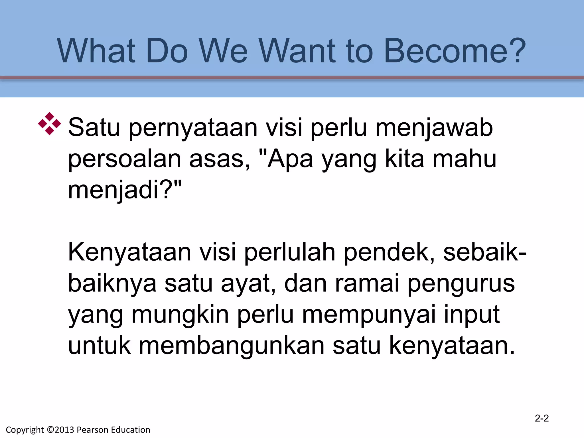 Dokumen ini membincangkan kepentingan dan perbezaan antara pernyataan visi dan misi dalam organisasi. Pernyataan misi menetapkan tujuan organisasi dan memberikan panduan untuk strategi serta keputusan, manakala pernyataan visi menjelaskan aspirasi masa depan organisasi. Proses pembangunan kenyataan-kenyataan ini melibatkan kerjasama dari pengurus dan bertujuan untuk membina ikatan emosi antara organisasi dan pekerjanya.