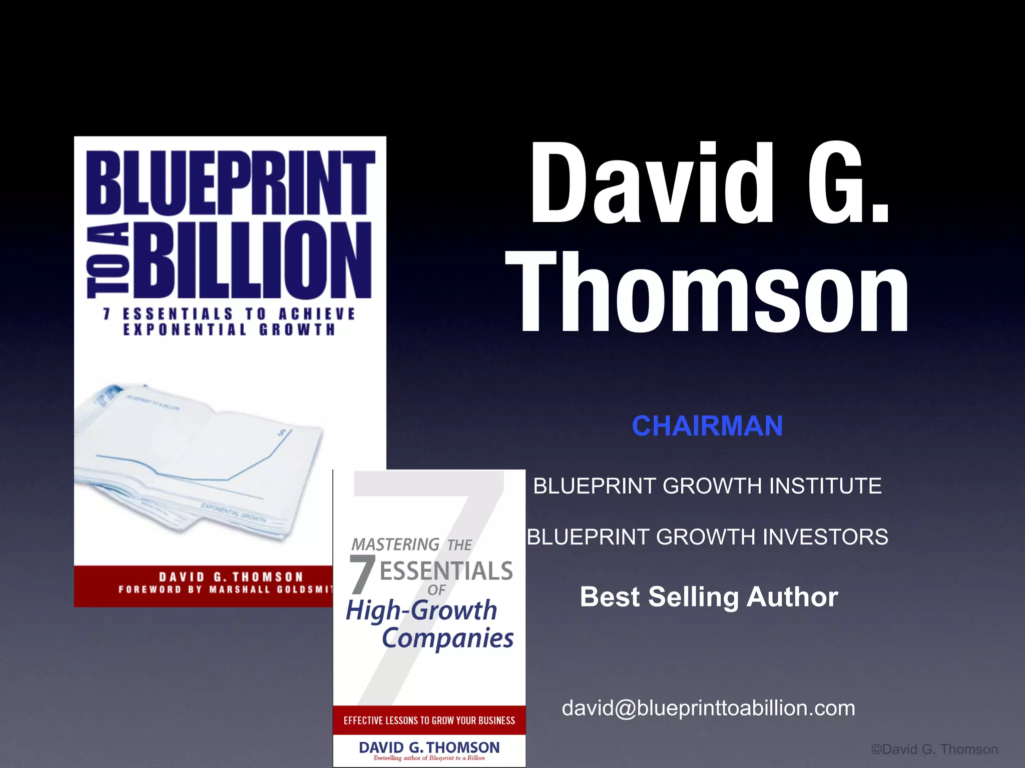 The document discusses the 7 essentials that exponential growth companies leverage to achieve billion dollar valuations, including creating breakthrough value, exploiting high growth markets, leveraging major customers and partners, achieving exponential returns, combining internal and external leadership, and ensuring an expert board. It provides examples and strategies for each essential and encourages assessing one's company across these factors. The final pages include a scorecard and next steps for businesses to analyze themselves.