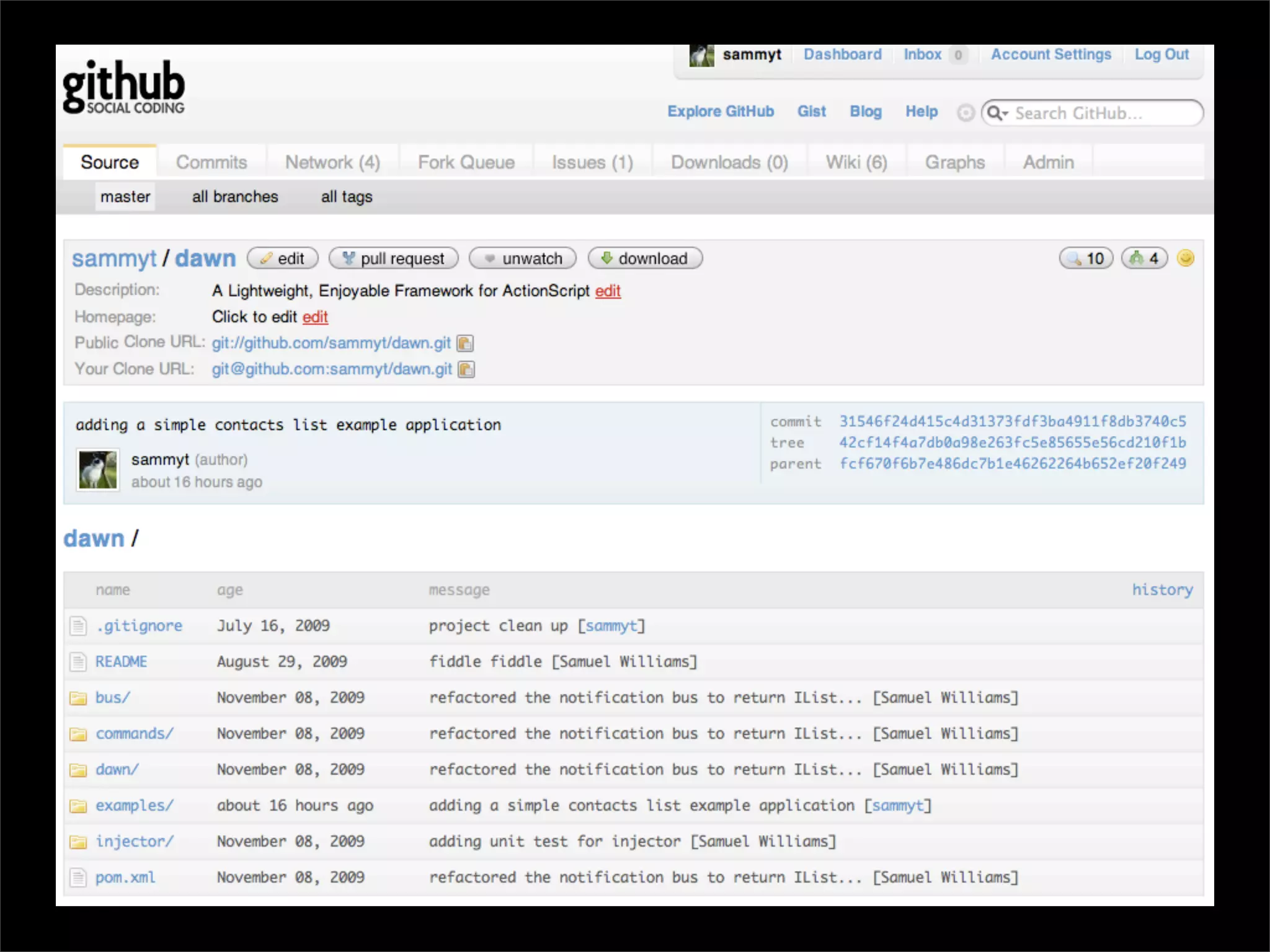 The document describes Dawn, a lightweight dependency injection and notification library for ActionScript. Some key points: