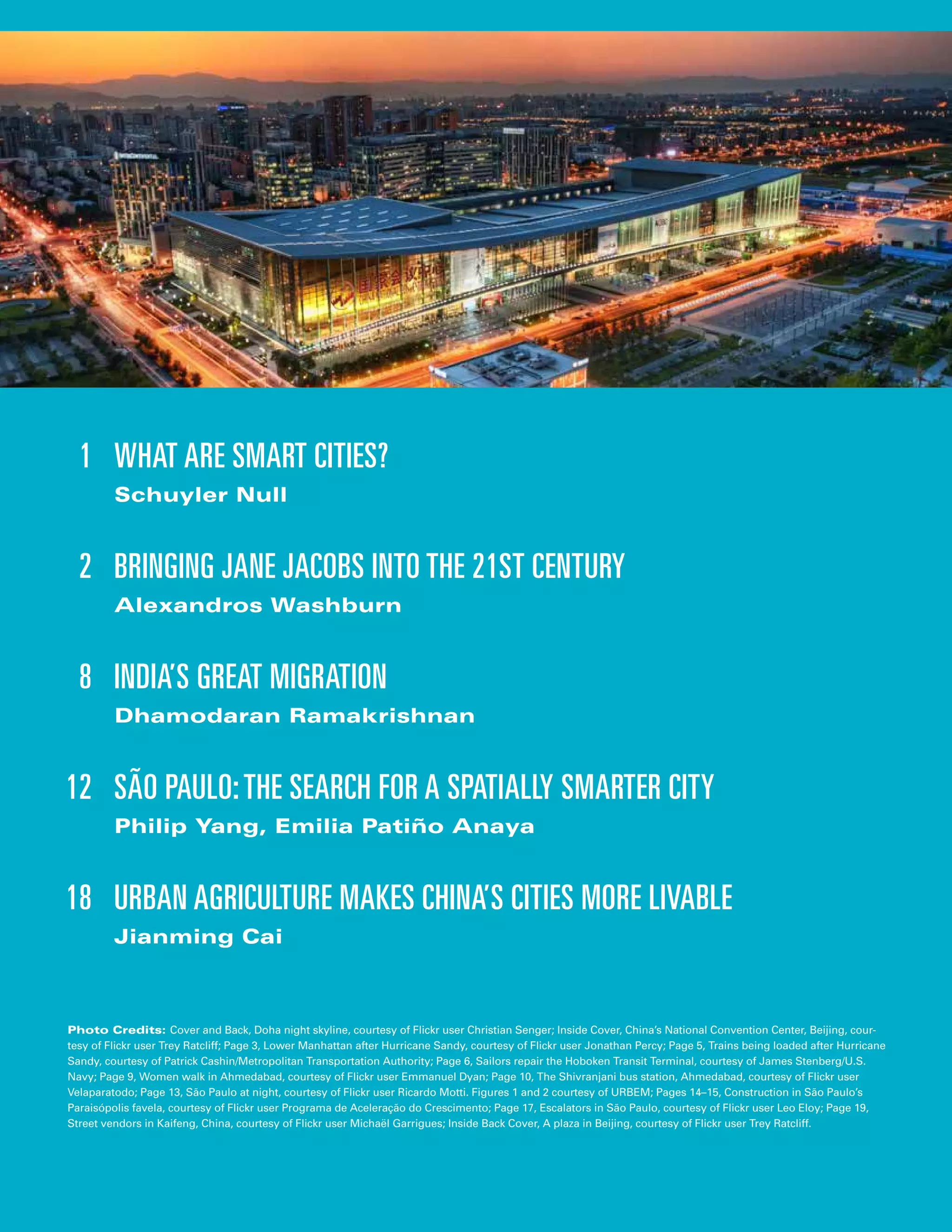 This document discusses perspectives on smart cities from New York, Ahmedabad, São Paulo, and Beijing. It begins with an overview of the concept of smart cities and how new technologies are being applied by companies and governments to address challenges facing rapidly growing urban areas. The essays examine how smart technologies could help New York prepare for hurricanes like Sandy, ease social tensions in Brazilian cities, and make urban agriculture viable in China. One essay argues that smart cities should facilitate more public participation and transparency in decision making to balance top-down and bottom-up approaches to urban planning and help cities adapt to changing times. It provides examples of how technologies could help speed up and improve New York's land use approval process.