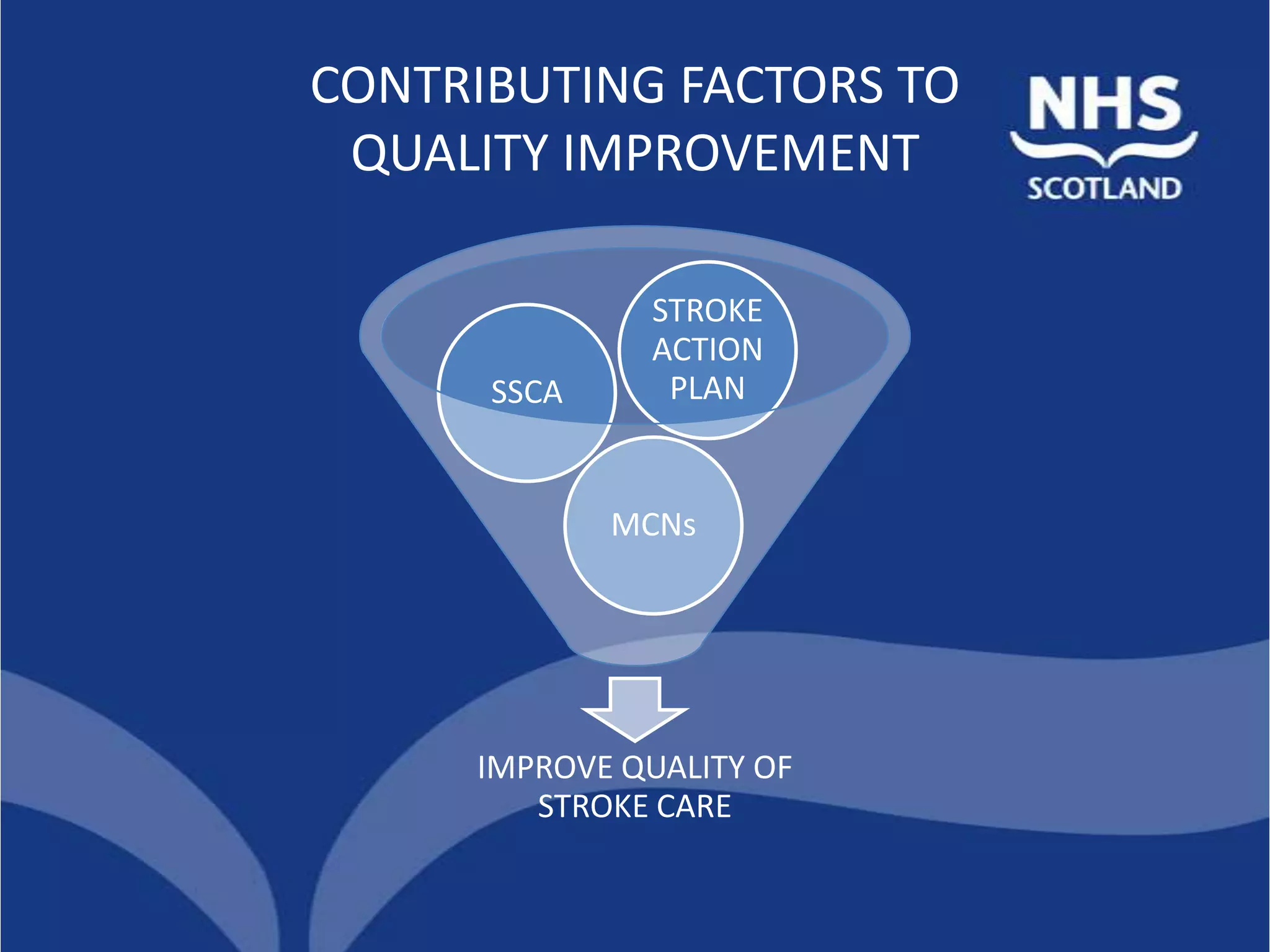 This document discusses the use of Stroke Managed Clinical Networks (MCNs) in Scotland to improve stroke care quality. It outlines how MCNs were established and have contributed to implementing the national Stroke Action Plan. Key activities of MCNs include using quality measures to drive local improvement, facilitating information sharing between boards, and engaging boards to prioritize stroke. The ultimate goals are creating a shared vision for high quality stroke services and demonstrating the value of MCNs in coordinating care and improvements.