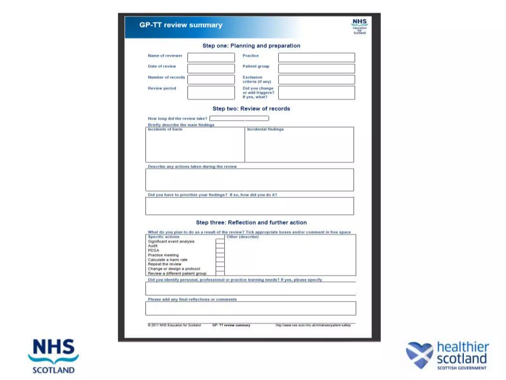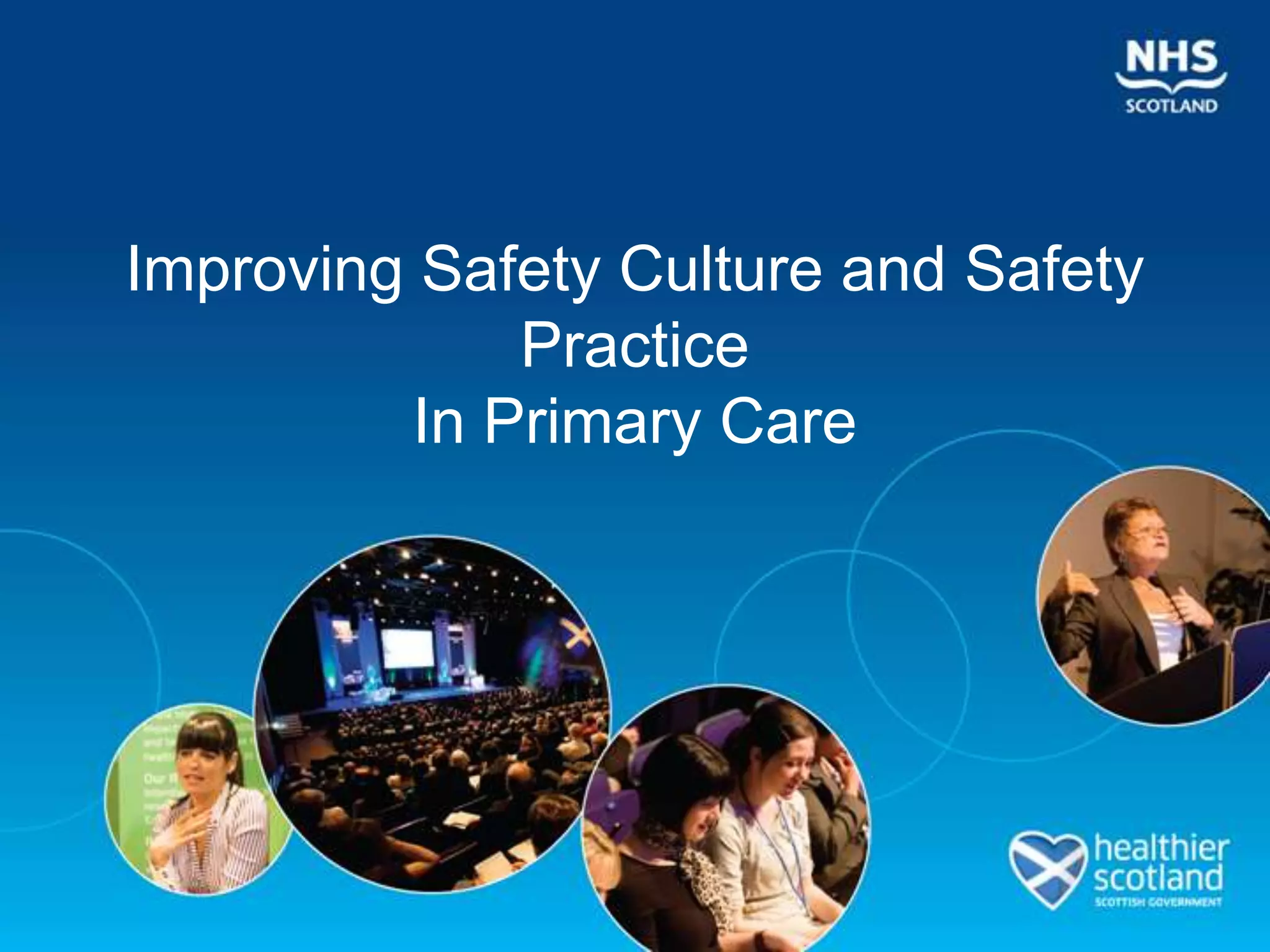 The document discusses improving safety culture and practices in primary care through implementing a patient safety program. It outlines why safety is important in primary care given the high volume of patients and risk of harm from errors. The program aims to help primary care teams identify and reduce harm through tools like reliable care bundles, trigger tools to detect harm, and surveys to measure safety climate and culture.