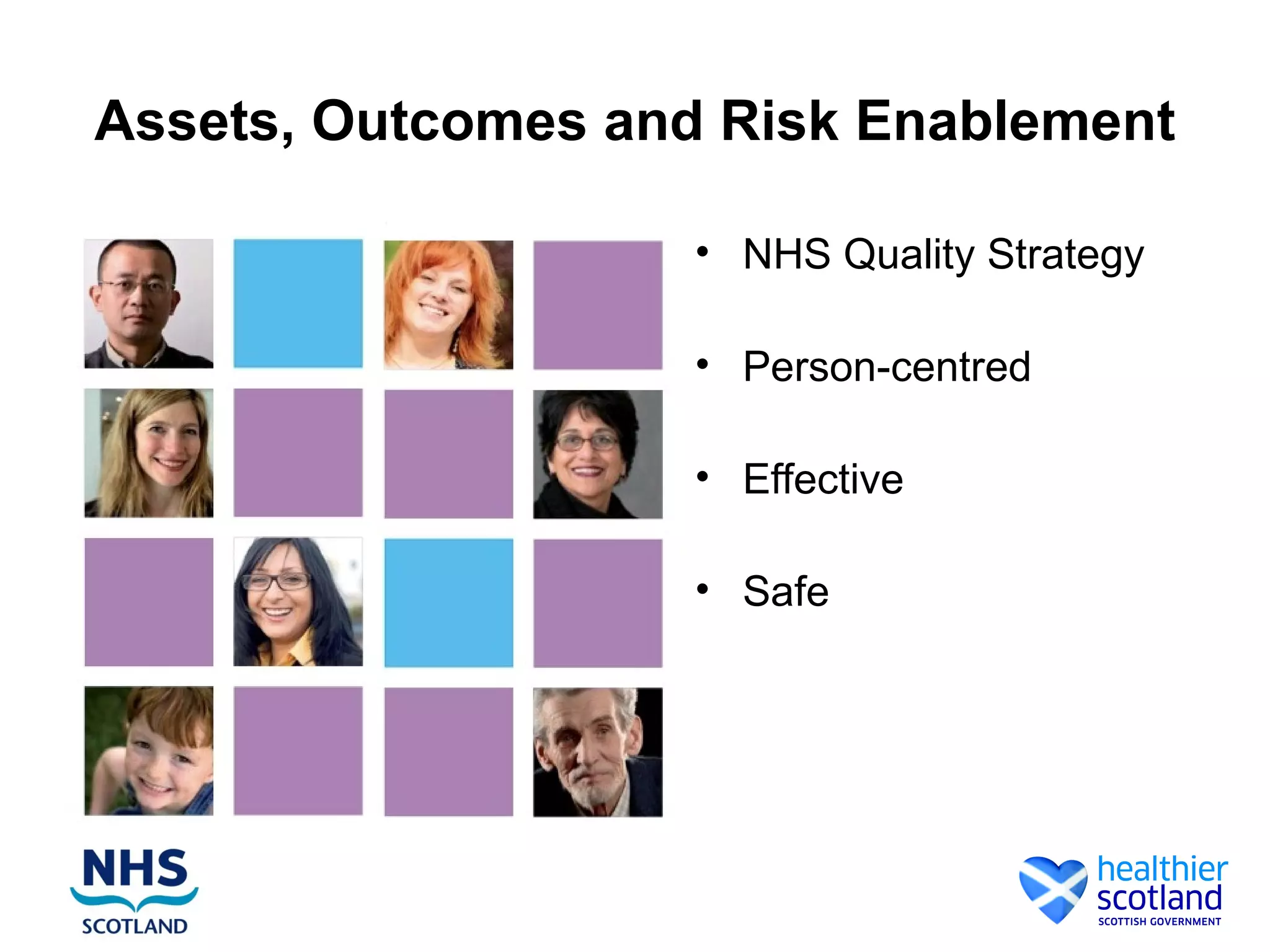 The document discusses creative and innovative approaches to empowering people through self-management and greater control over their health outcomes and risks. It focuses on person-centered care, identifying assets and building support networks to facilitate self-management of long-term conditions. The importance of risk enablement is emphasized to promote choice and control for individuals through self-directed support options.