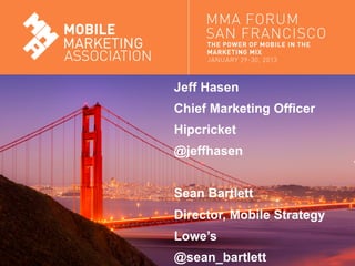 The document discusses a presentation by Jeff Hasen, Chief Marketing Officer of Hipcricket, and Sean Bartlett, Director of Mobile Strategy at Lowe's. They discuss Lowe's creative mobile marketing ideas including an associate app and an mPOS pilot program.
