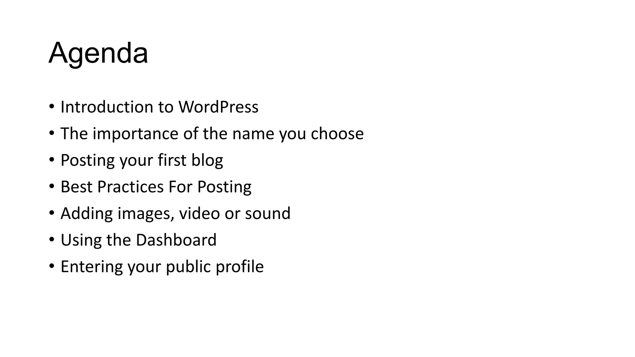 WordPress is a free and open-source blogging tool that allows users to create their own blog or website. The document provides an introduction and overview of WordPress, including how to sign up, write posts, add images/videos, and use the dashboard interface. Key aspects covered are the importance of choosing a memorable blog name, best practices for writing posts, and utilizing various dashboard modules like stats and quick posts. The goal is to introduce users to the basics of the WordPress blogging platform.