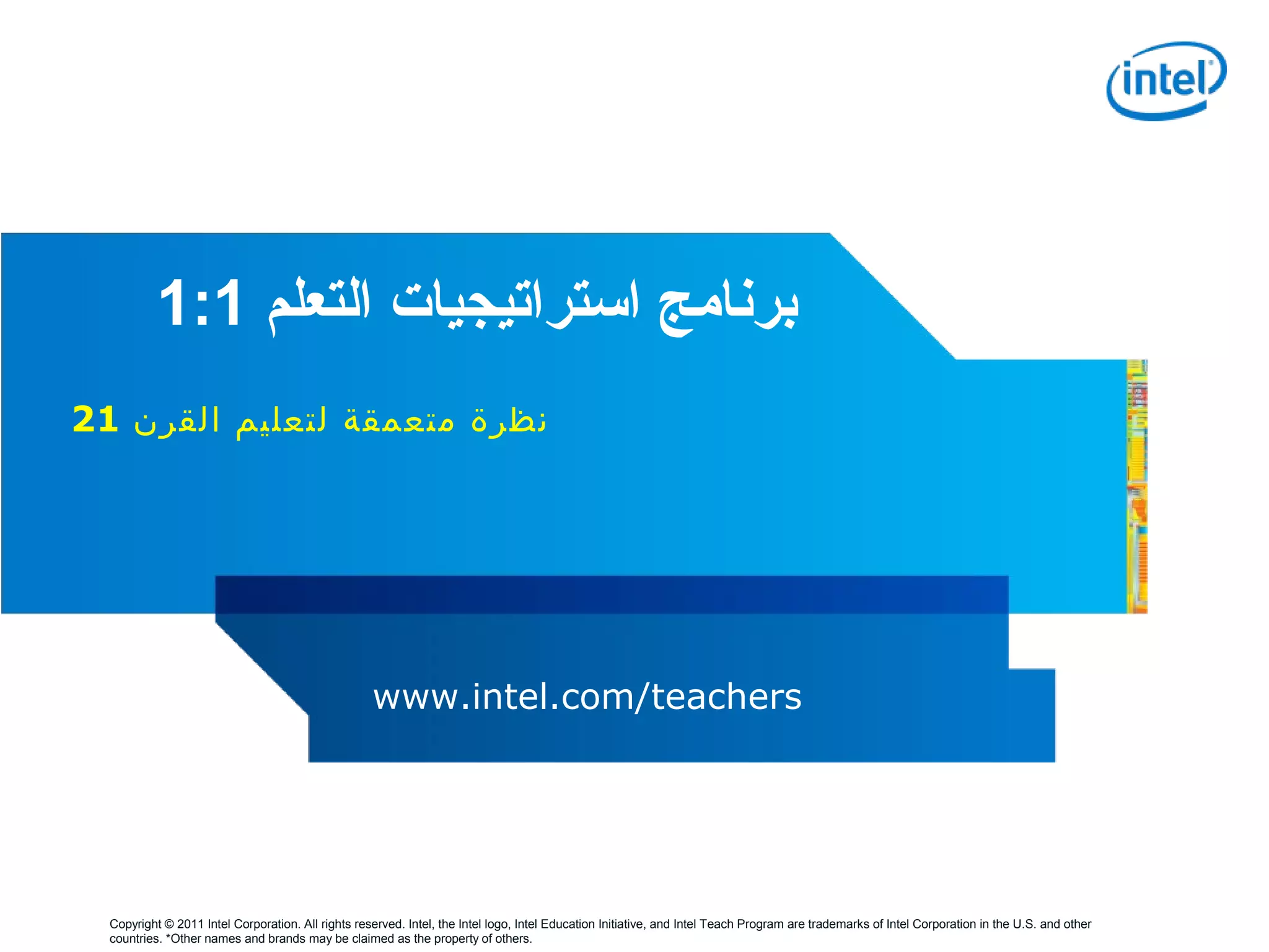 تتناول الوثيقة استراتيجيات التعلم 1:1، حيث يتم تسليط الضوء على كيفية استخدام التكنولوجيا في التعليم لتعزيز التعلم الذاتي والتفاعل داخل الصف الدراسي. تقدم الوحدة أهدافًا رئيسية تشمل توثيق ممارسات التدريس الحالية وفهم كيفية تنفيذ تقنية 'حاسوب لكل طالب' بشكل فعال. كما تشجع الوثيقة على استكشاف التقنيات المختلفة وطرق تدريس مبتكرة لدعم التعلم الفردي وتوسيع آفاق الطلاب.